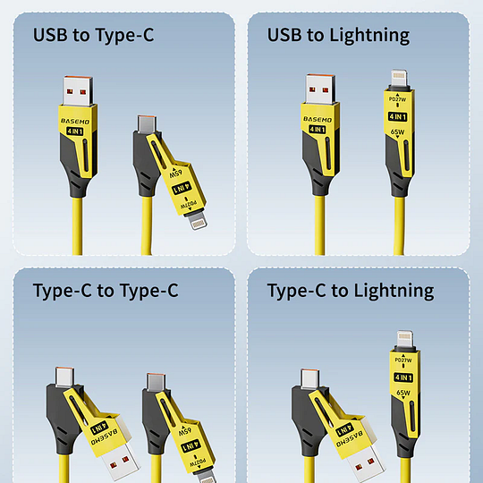 • 4-in-1 Cable: Supports USB to Type-C, USB to Lightning, Type-C to Type-C, Type-C to Lightning. You don't need to carry multiple charging cables.