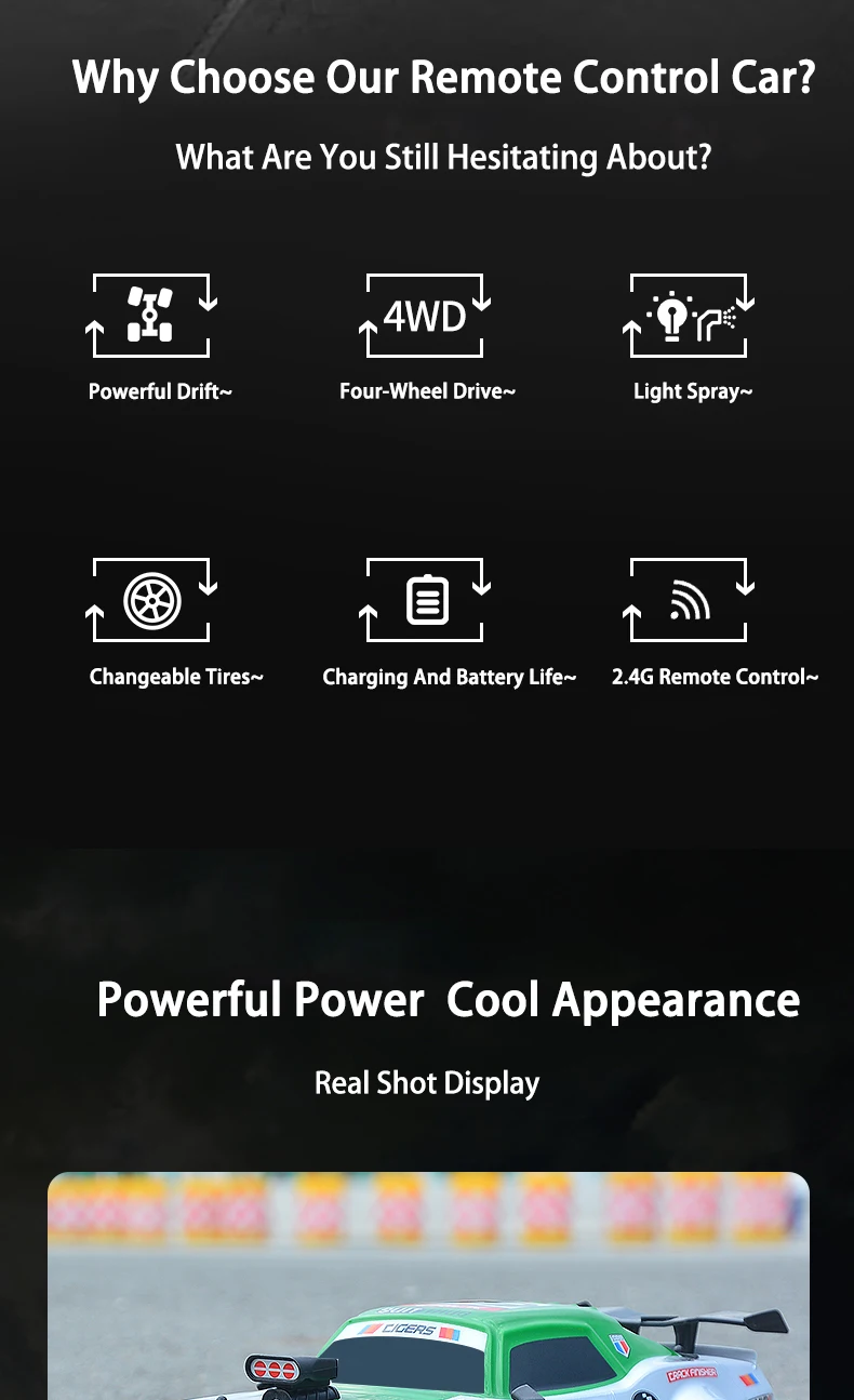 • 4x4 All-Wheel Drive: Powerful 4WD system that delivers incredible stability and drift performance. Perfect for both indoor and outdoor play.