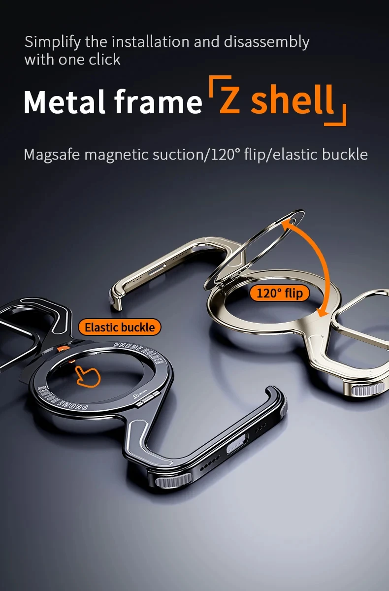 The Z Shape Aluminum Alloy Rimless Magnetic Phone Case is designed to offer your iPhone the perfect combination of premium protection, modern design, and advanced features. Compatible with iPhone 16, 15, 14, 13 Plus, Pro, and Max, this case will keep your phone safe while adding an elegant touch to your everyday look.