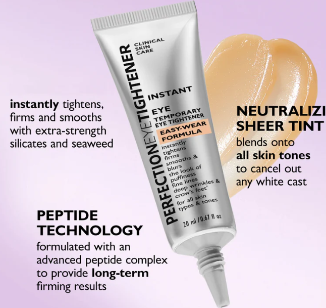 Clinically proven to immediately reduce the look of under-eye puffiness, fine lines, deep wrinkles and crow's feet for a temporary effect that can last all day! Easy to apply and comfortable to wear, this scientifically advanced eye tightener blends onto all skin types and tones and won’t pill under makeup.