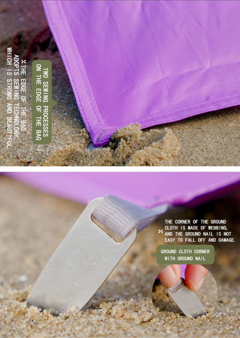 - Reinforced Ground Stakes: Equipped with stakes to secure the mat, even in windy conditions or on the beach.